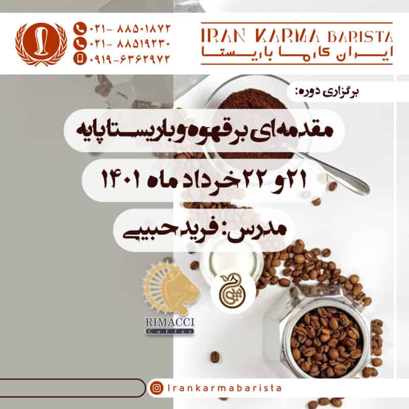 دوره آموزشی باریستا مقدماتی خرداد ۱۴۰۱