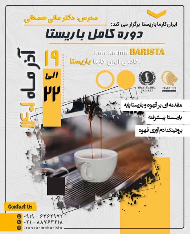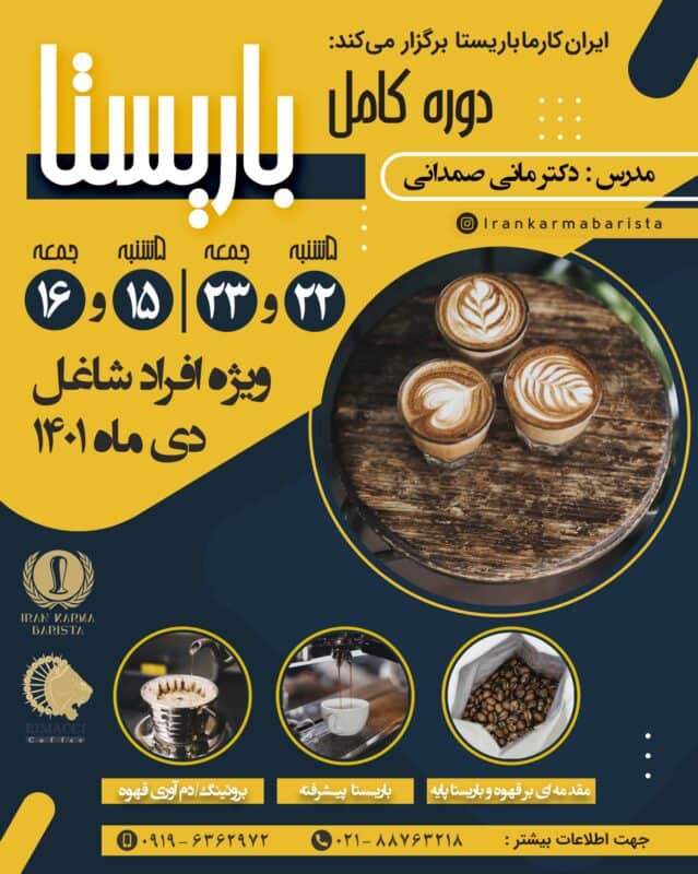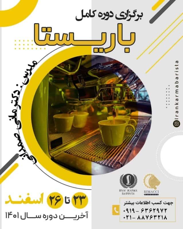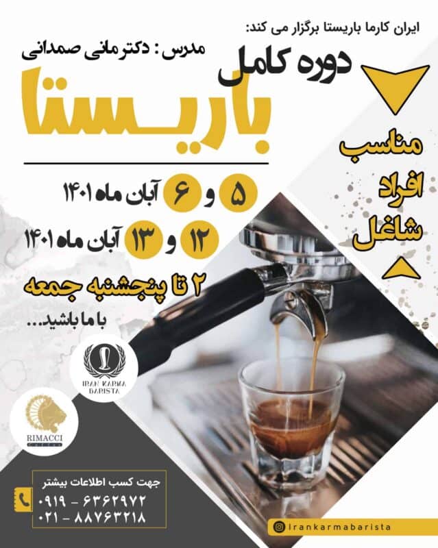 دوره آموزشی جامع باریستا فروردین 1402 (در حال ثبت نام)